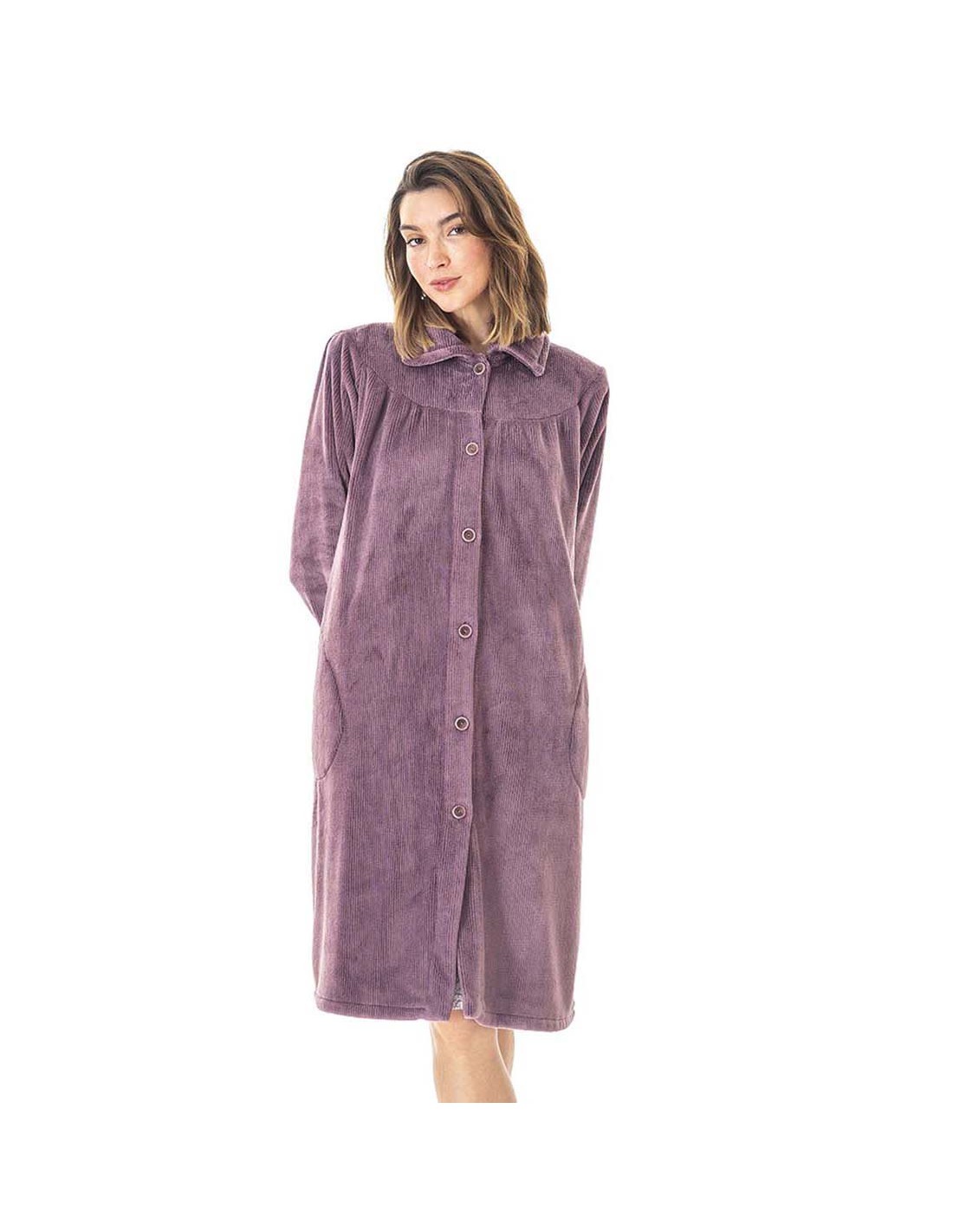 Aquesta elegant bata de 1.10 metres de llargada està confeccionada en un suau teixit de pèl, proporcionant calidesa i confort. El seu disseny inclou una subtil ratlla vertical que afegeix un toc de sofisticació, el patró incorpora un pitxer que proporciona més amplitud i fluïdesa al moviment. Compte amb una pràctica obertura frontal amb botons per a un ajust versàtil, així com butxaques del mateix teixit, que aporten funcionalitat sense perdre elegància. Disponible en diversos colors per adaptar-se a diferents estils, és l'elecció perfecta per als que cerquen confort i distinció.