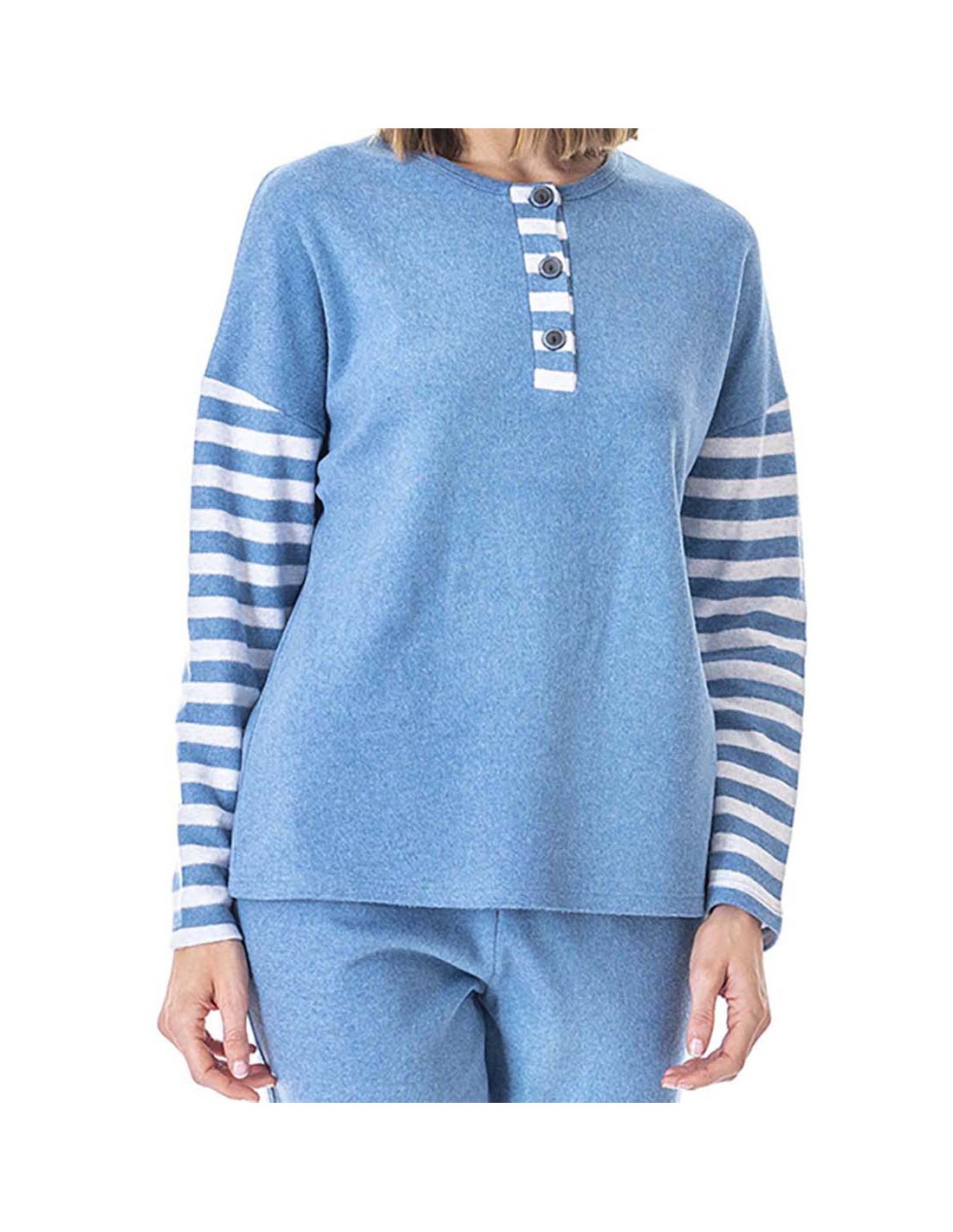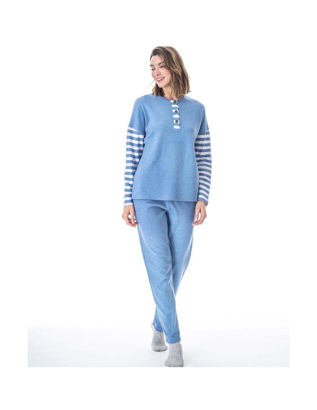 PIJAMA DE PUNTO MILANO CON TAPETA Y CUELLO REDONDO