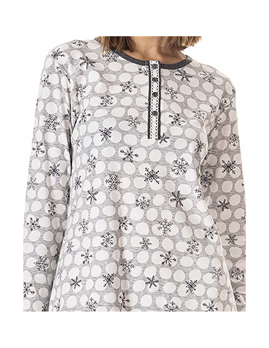 Aquesta camisó de 100% cotó combina comoditat i estil gràcies al seu disseny estampat modern en tons neutres, perfecte per al descans i moments de relax a casa. El seu coll rodó està realçat amb una tapeta frontal de botons i detall amb encaix de contrast que afegeixen un toc sofisticat. El teixit suau i lleuger, juntament amb les seves mànigues llargues,...