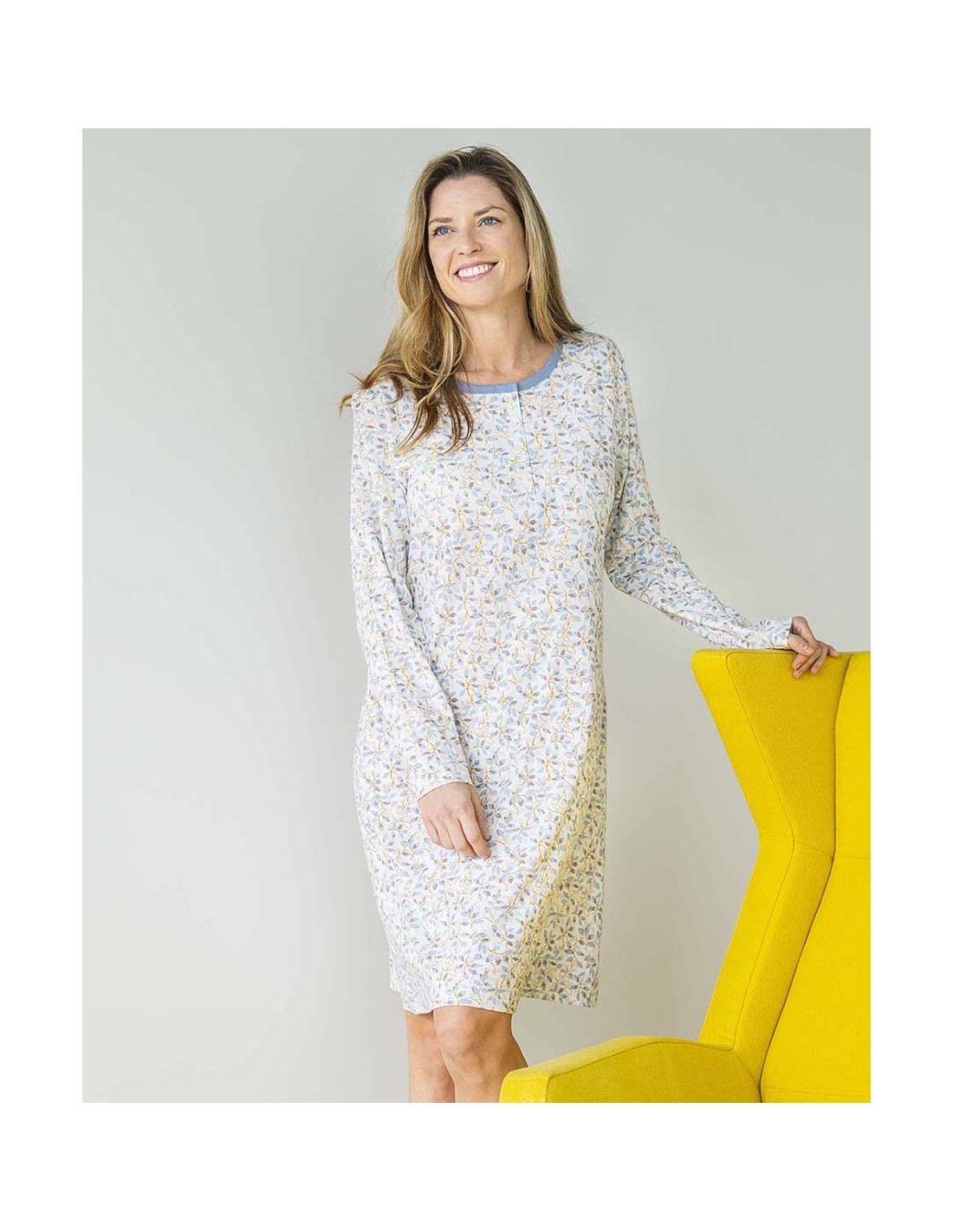 Aquesta camisa de dormir destaca pel seu disseny estampat únic en tons càlids i moderns de teixit cotó modal suau i còmode, perfecte per al descans a casa. El seu coll rodó amb rivet de contrast aporta un toc de distinció, i tapeta frontal amb botons, mentre que les mànigues llargues el fan ideal per als dies més frescos. Perfecte per gaudir de nits còmodes o matins relaxats amb elegància.