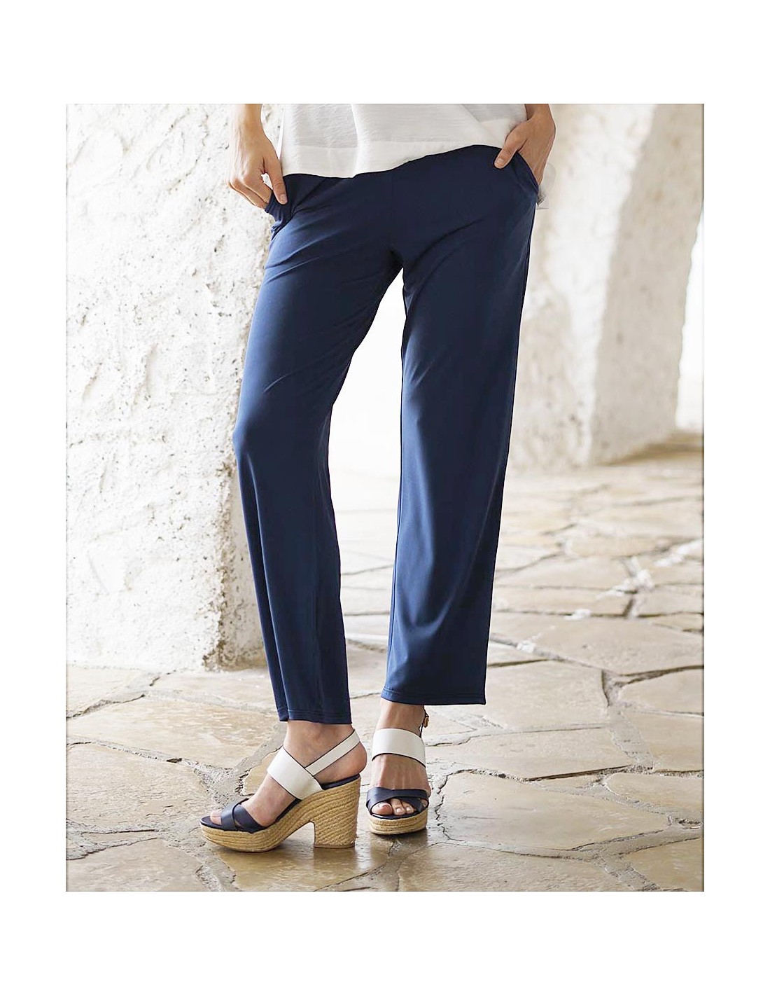 PANTALON DE LARGO PUNTO LISO CON BOLSILLOS