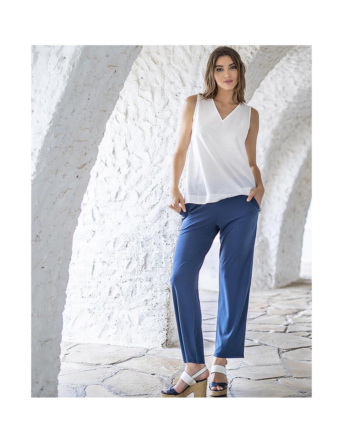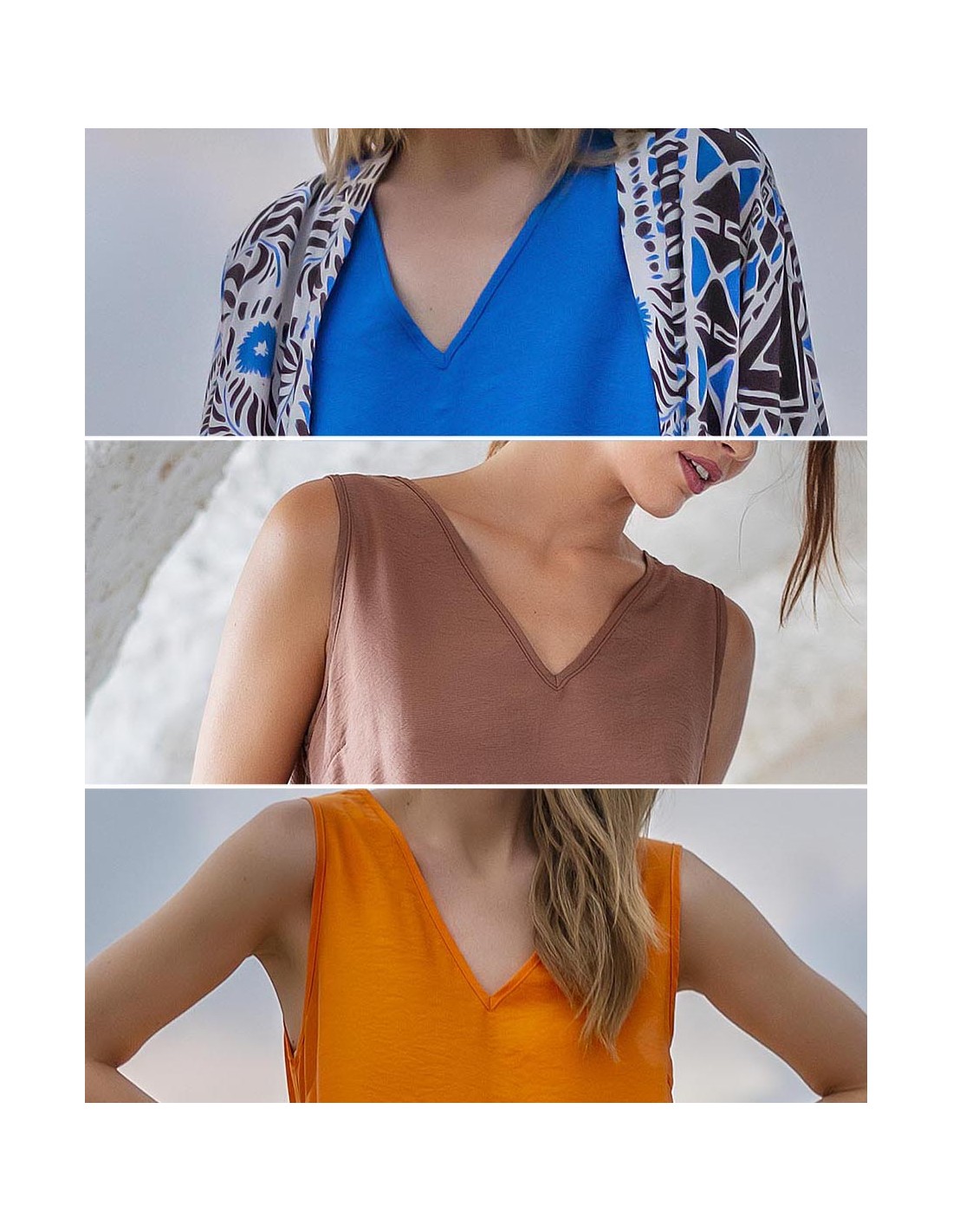 Camiseta con cuello pico y tirantes anchos, variedad de colores lisos, ideal como fondo de armario.