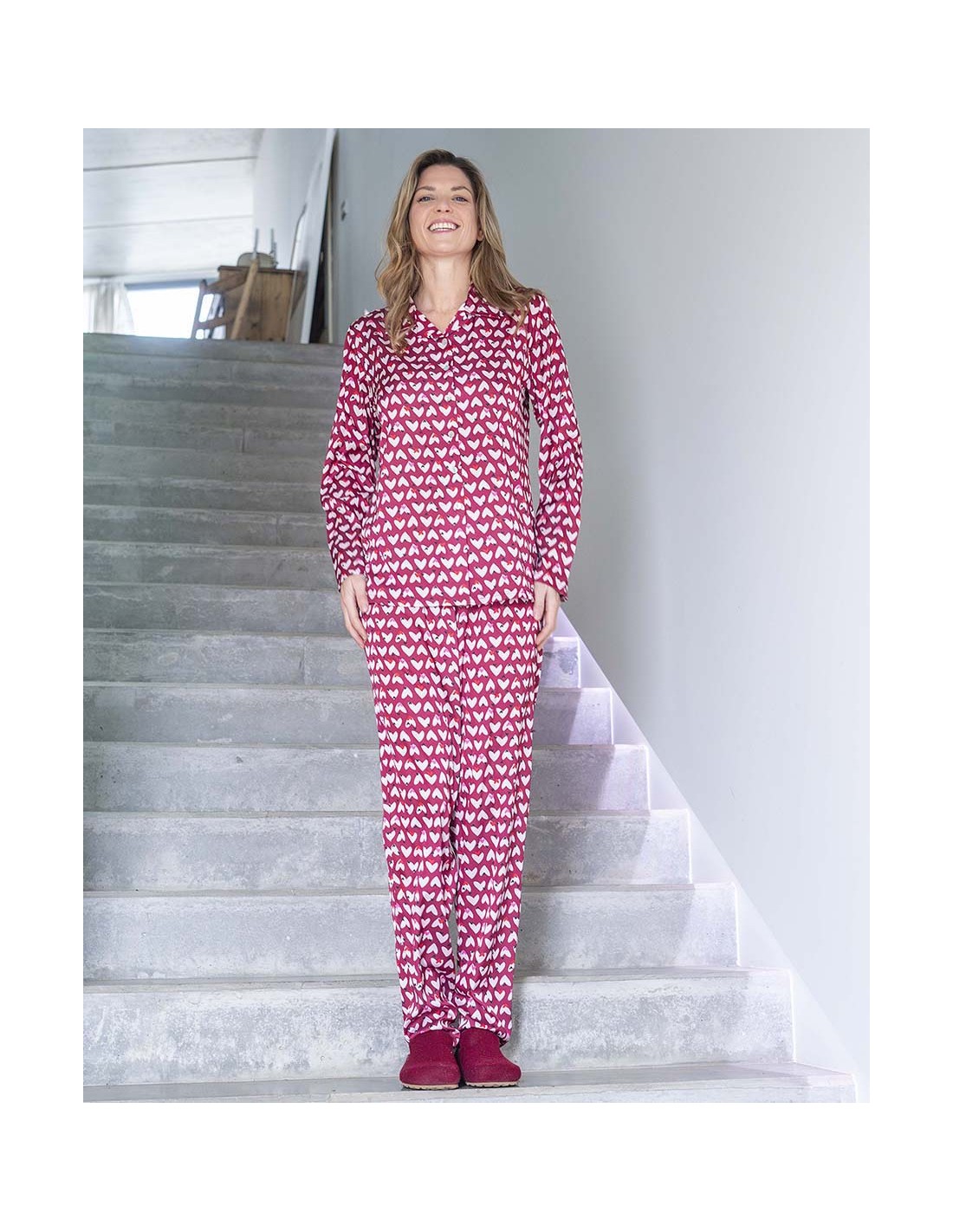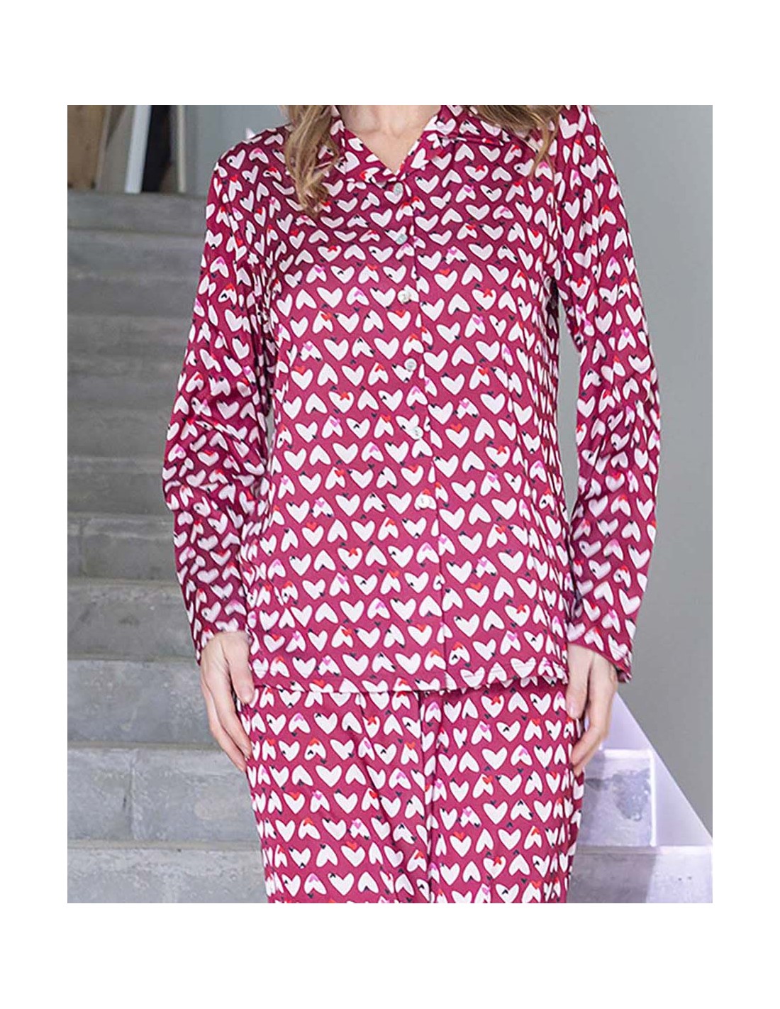 PIJAMA CAMISERO DE RASO CON ESTAMPADO DE CORAZONES