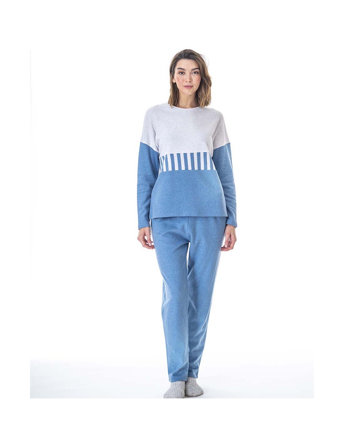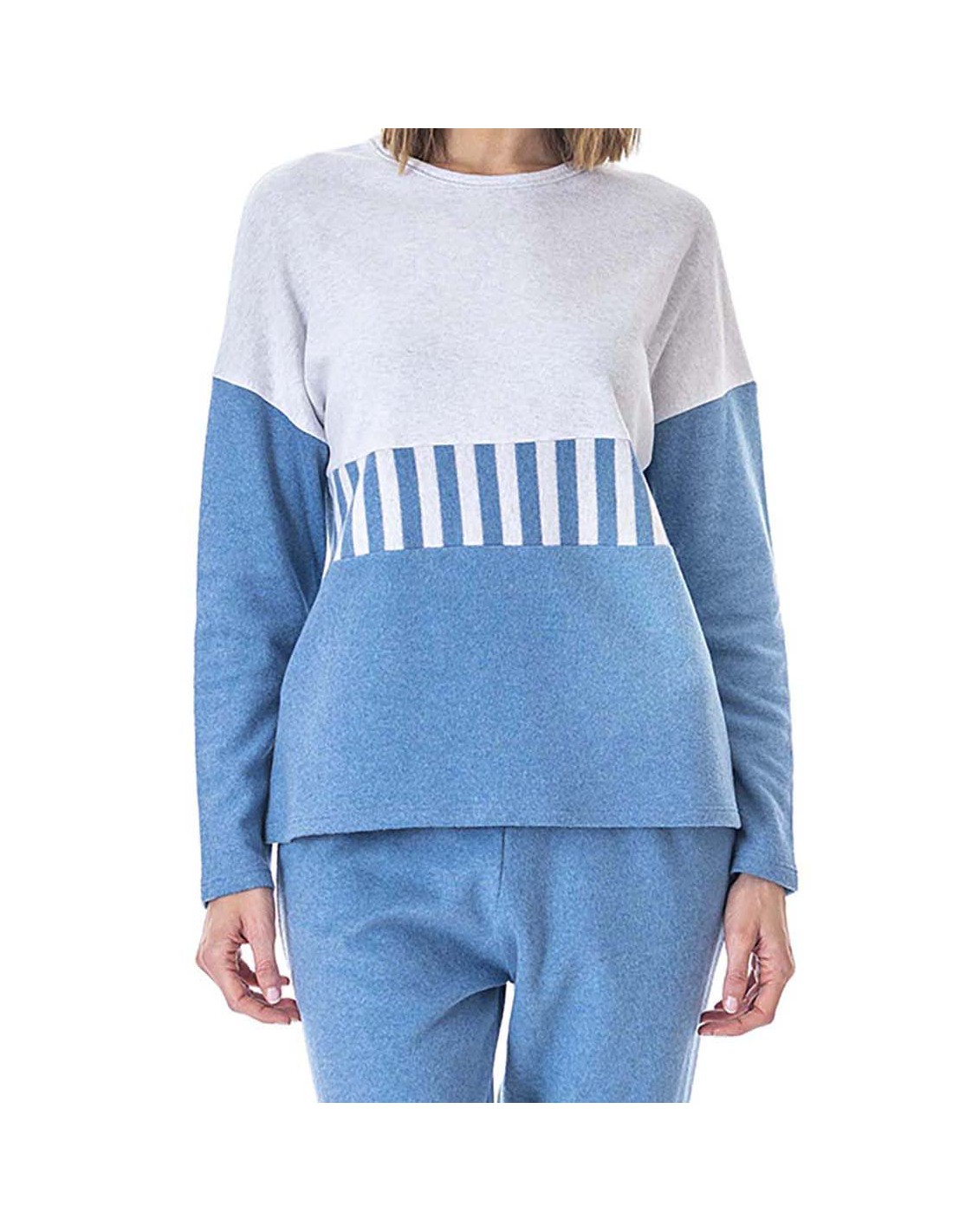 PIJAMA DE PUNTO MILANO CON DISEÑO BICOLOR