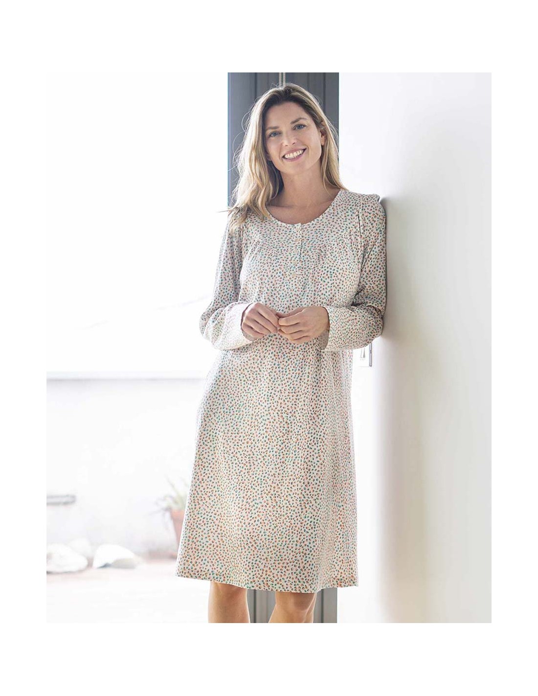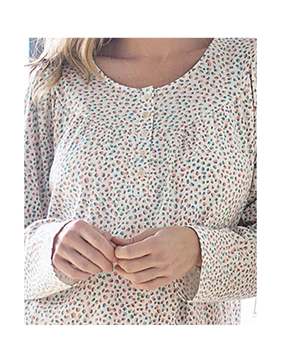 CAMISÓN ESTAMPADO CON PECHERO Y TAPETA DE MANGA LARGA