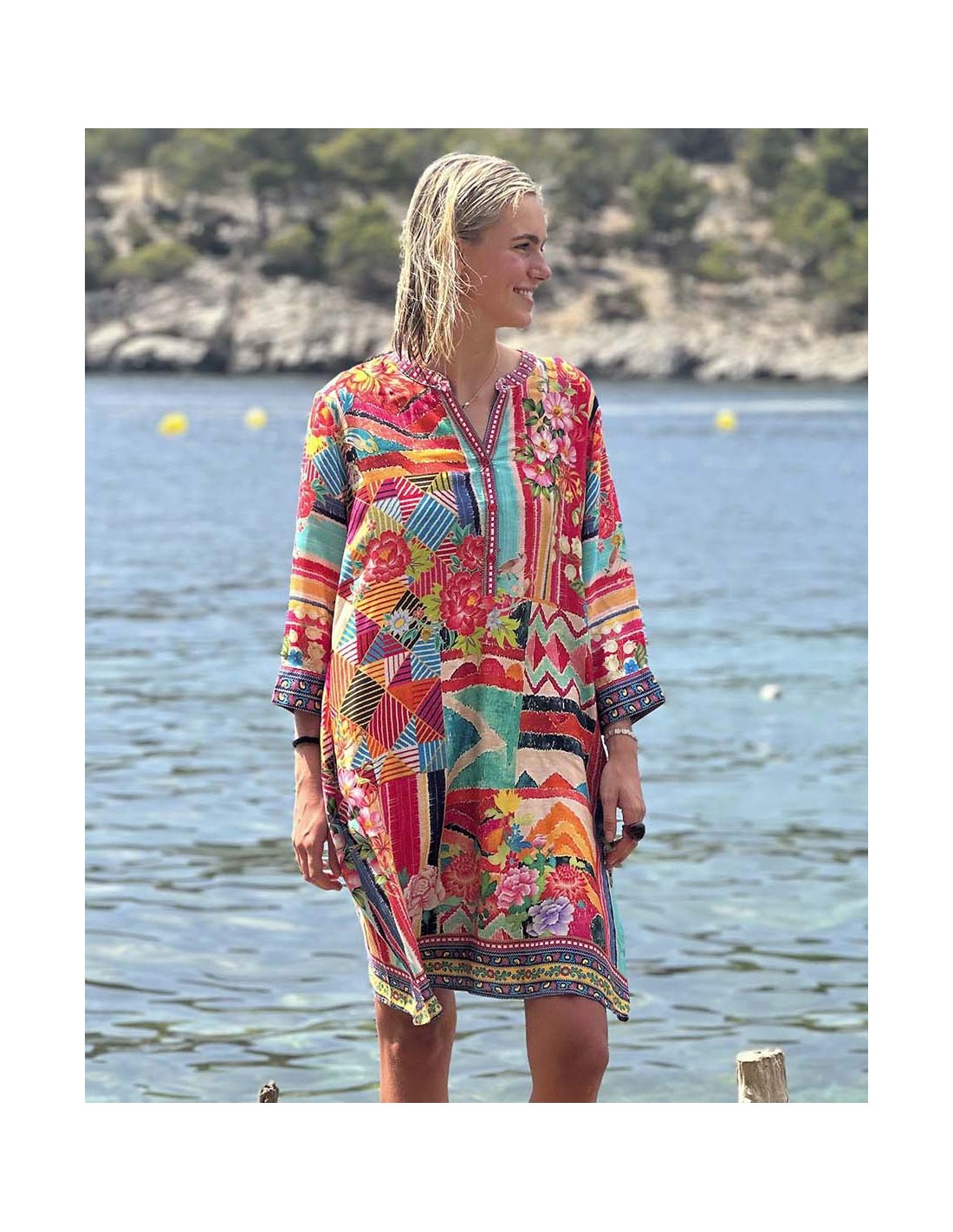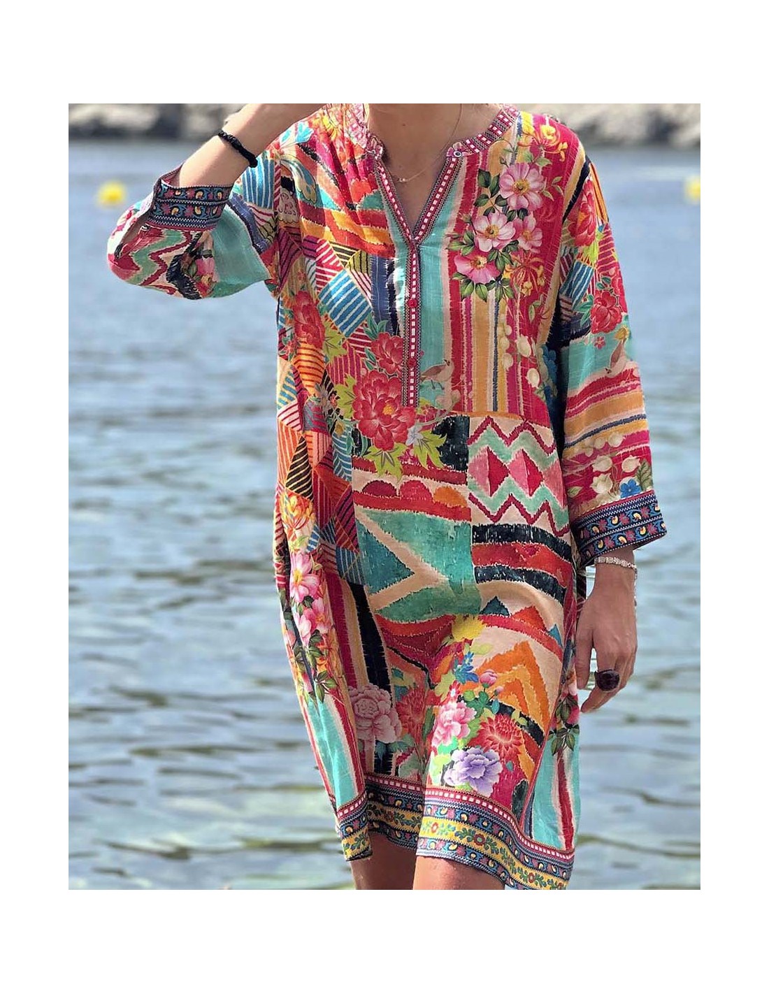 Atrévete a destacar con nuestra túnica de viscosa estampada, una prenda única que fusiona la elegancia con la energía de los colores vibrantes. Su diseño inspirado en motivos parch en rojo te transportará a destinos exóticos, mientras que su corte holgado y fluido te permitirá moverte con libertad y comodidad. Confeccionada en suave viscosa, esta túnica es perfecta para los días más calurosos del verano. Ideal para la playa, festivales, eventos al aire libre o para añadir un toque bohemio a tus looks diarios.