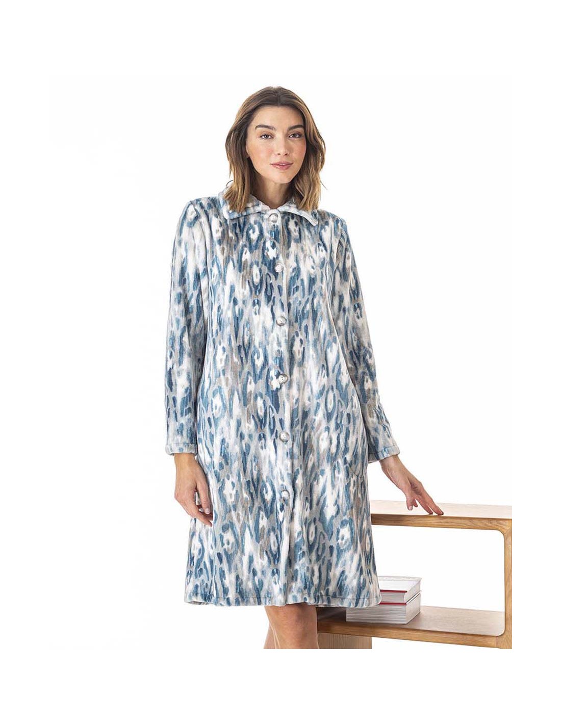 Robe en fourrure imprimée abstraite avec boutons, 1,05 m