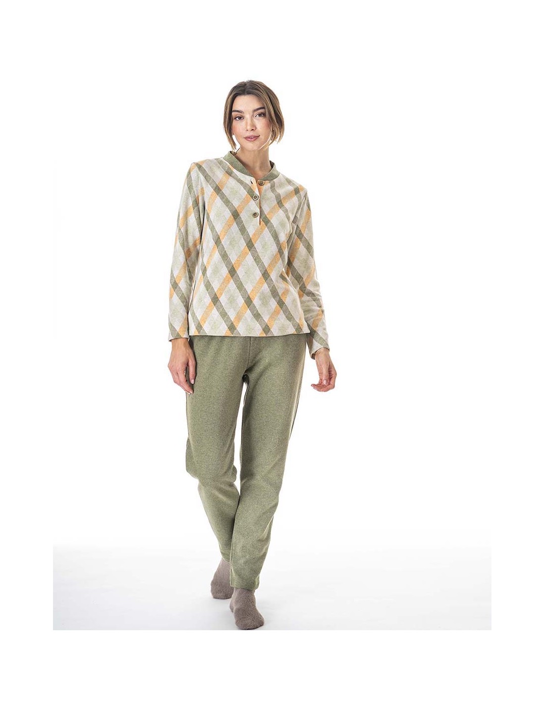 PIJAMA DE PUNTO MILANO CON ESTAMPADO CUADROS DIAGONALES