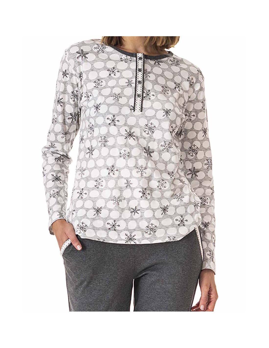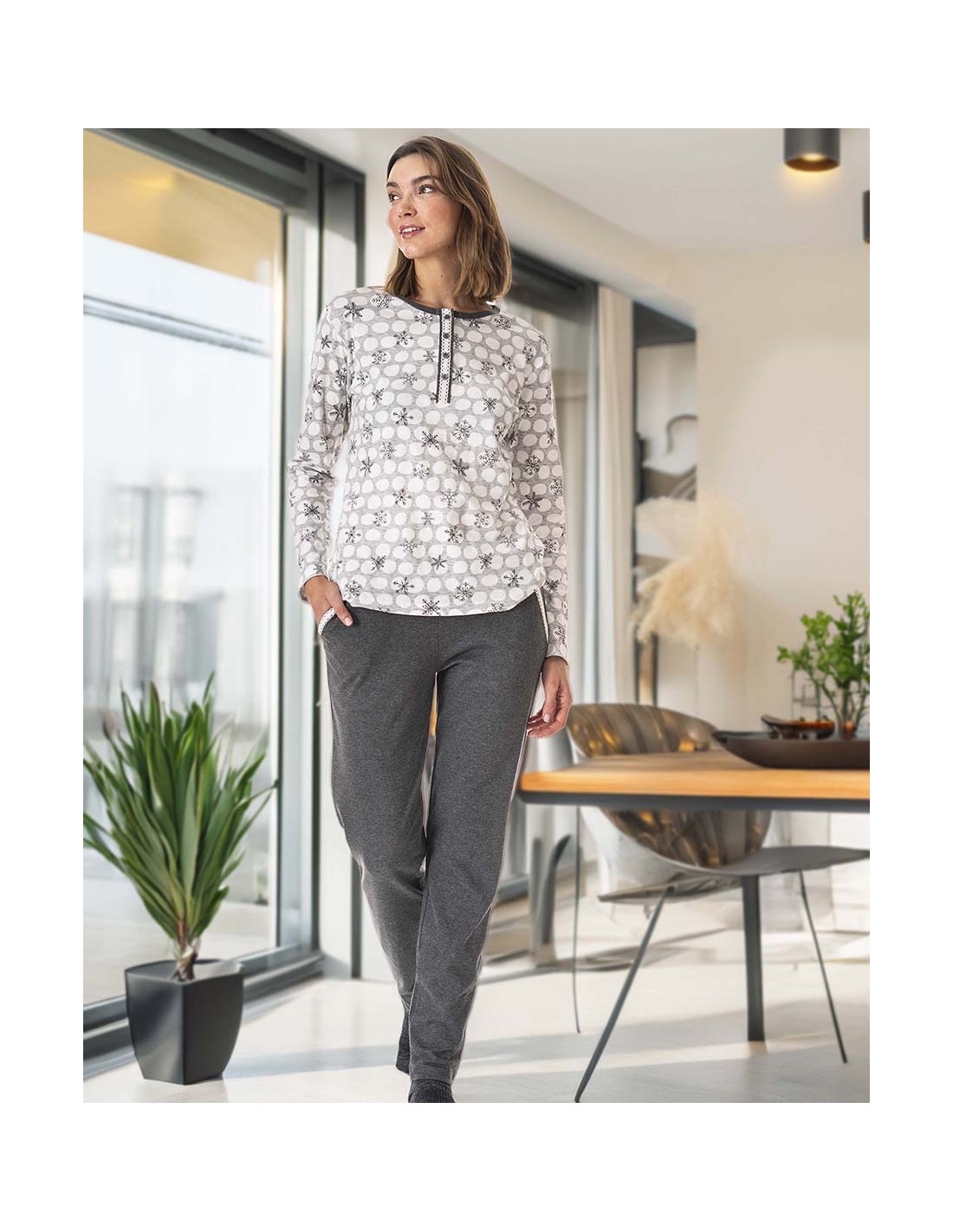 Cette chemise de nuit 100 % coton allie confort et style grâce à son imprimé moderne aux tons neutres, idéale pour se détendre à la maison. Son encolure ronde est rehaussée d'une patte de boutonnage et de détails en dentelle contrastante pour une touche sophistiquée. Son tissu doux et léger, ainsi que ses manches longues, la rendent idéale en toute...