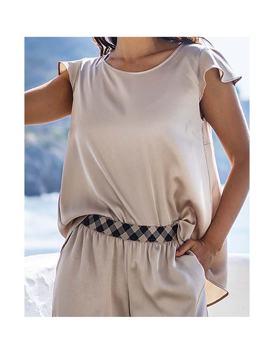 CAMISETA DE RASO SATINADO CON PLIEGUE POSTERIOR