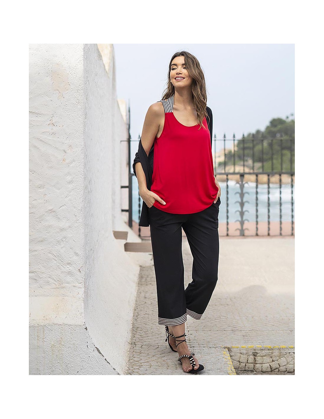 Top con tirantes y media espalda descubierta, con diferentes colores lisos. Total look.