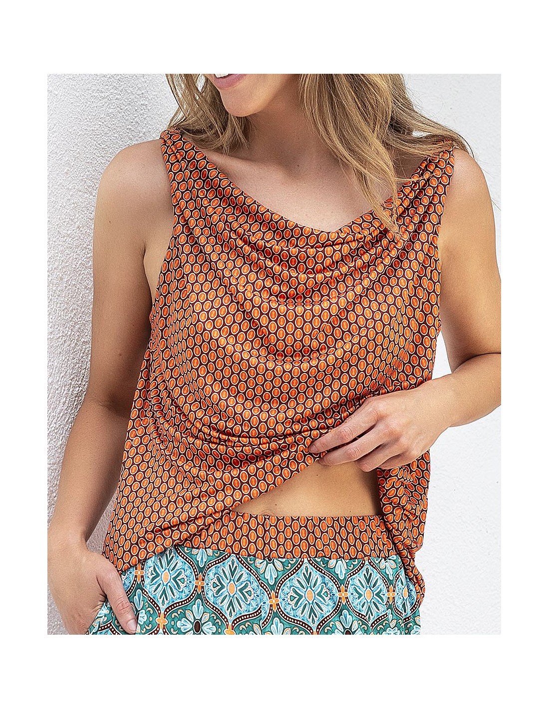 TOP ESCOTE DRAPEADO DE PUNTO ESTAMPADO