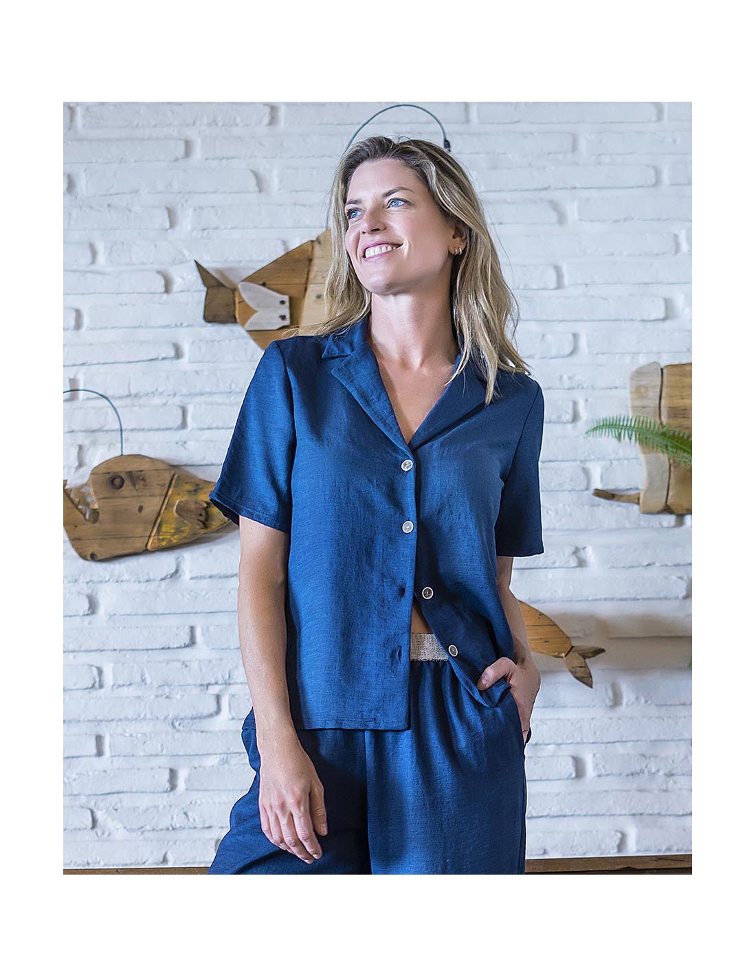 PANTALON UNI À TAILLE ÉLASTIQUE FANTAISIE
